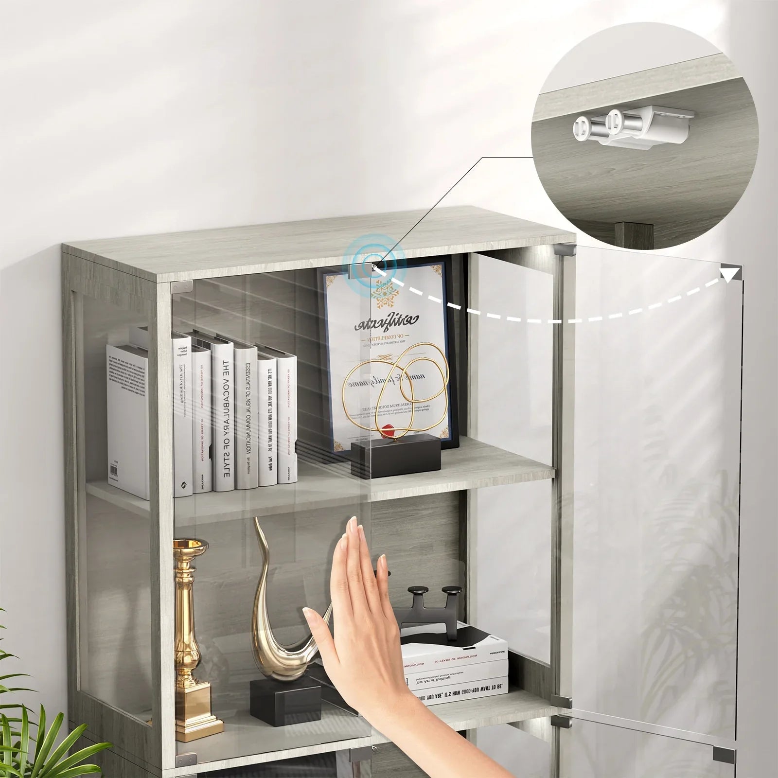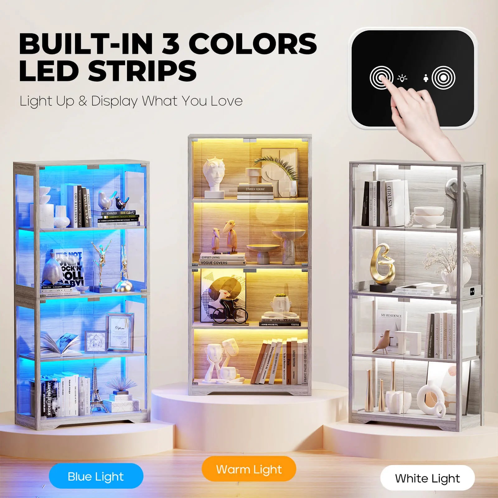 BROTTAR® LED Glass Display Cabinet — 4-Shelf Curio Case - GreyBD001G